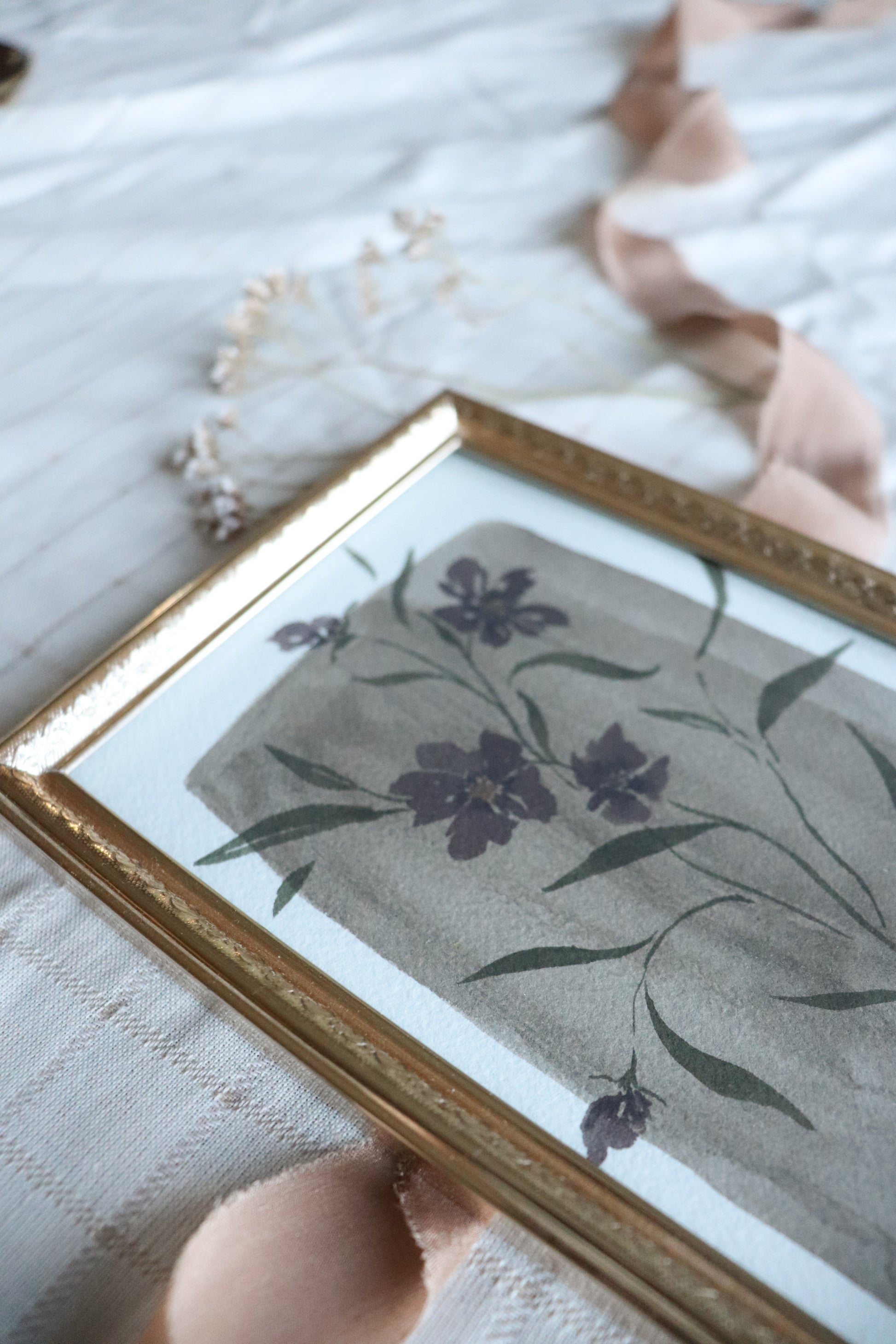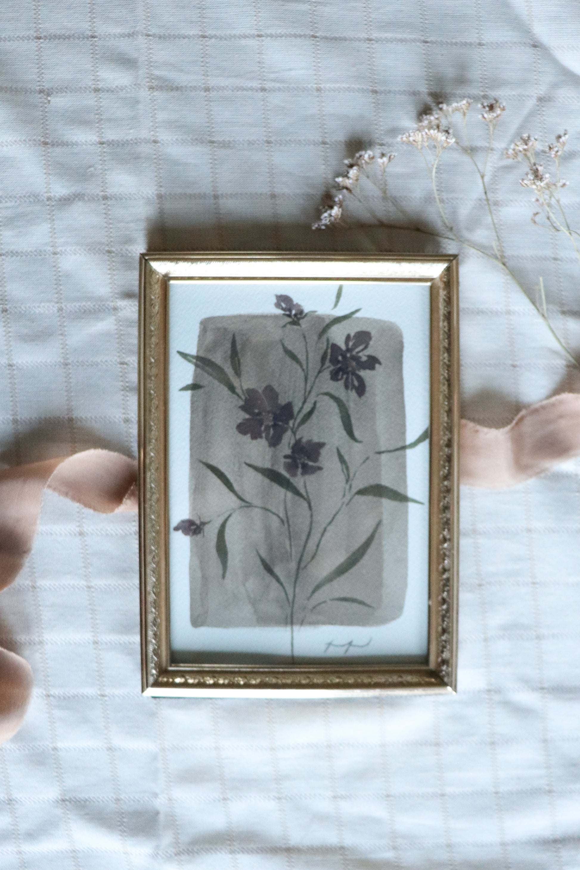 This original is 5x7 inches and comes signed on 100% archival cotton paper, and has the option to be framed in a vintage gold frame.