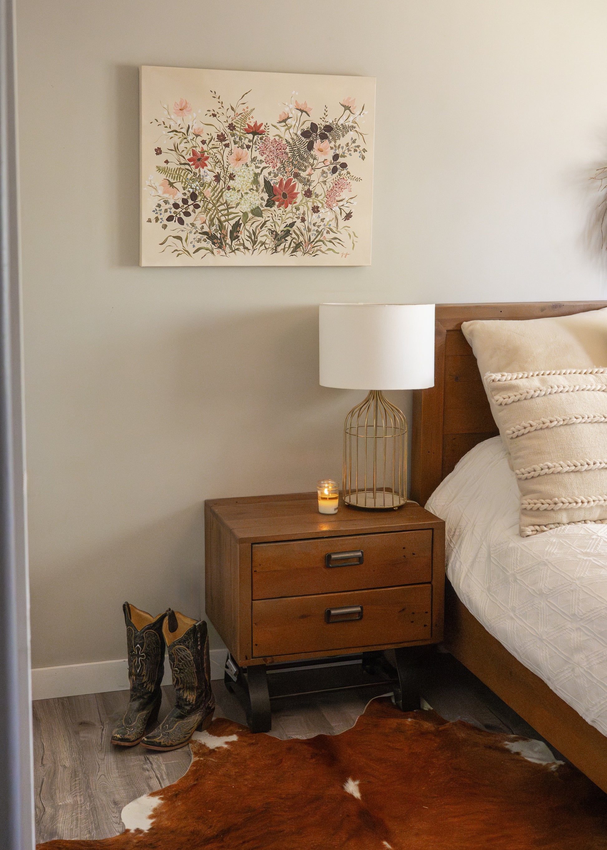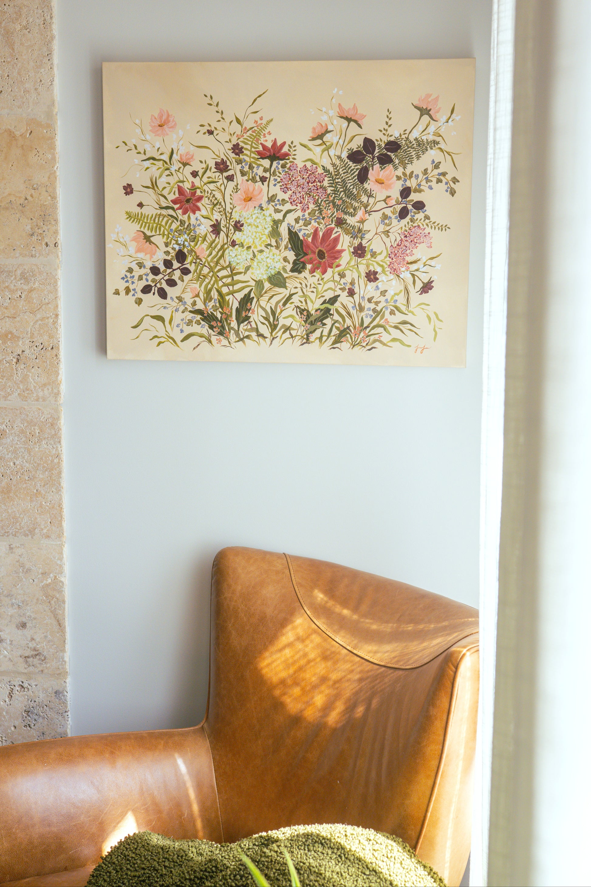 This original is 24x30 inches, acrylic on gallery wrapped canvas. It is varnished and comes ready to hang. Jolene has signed it on the front, as well as signed and titled on the back.