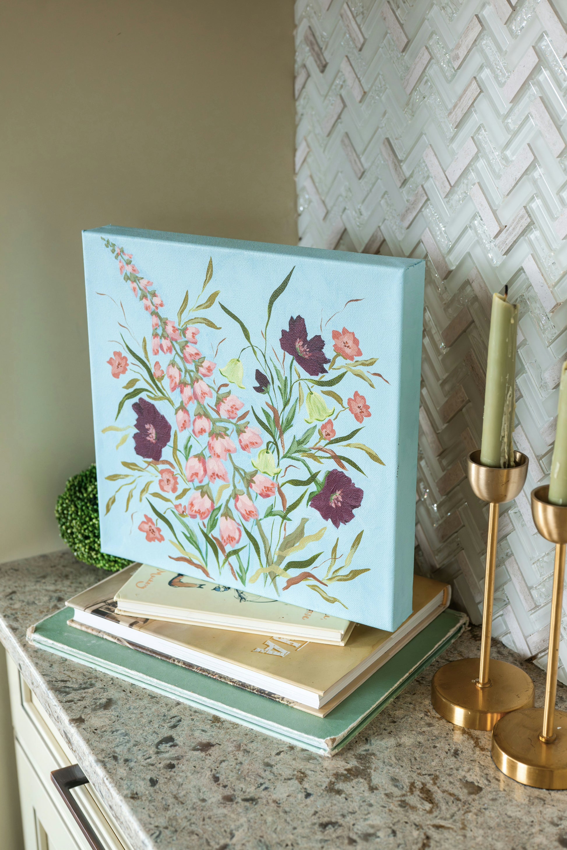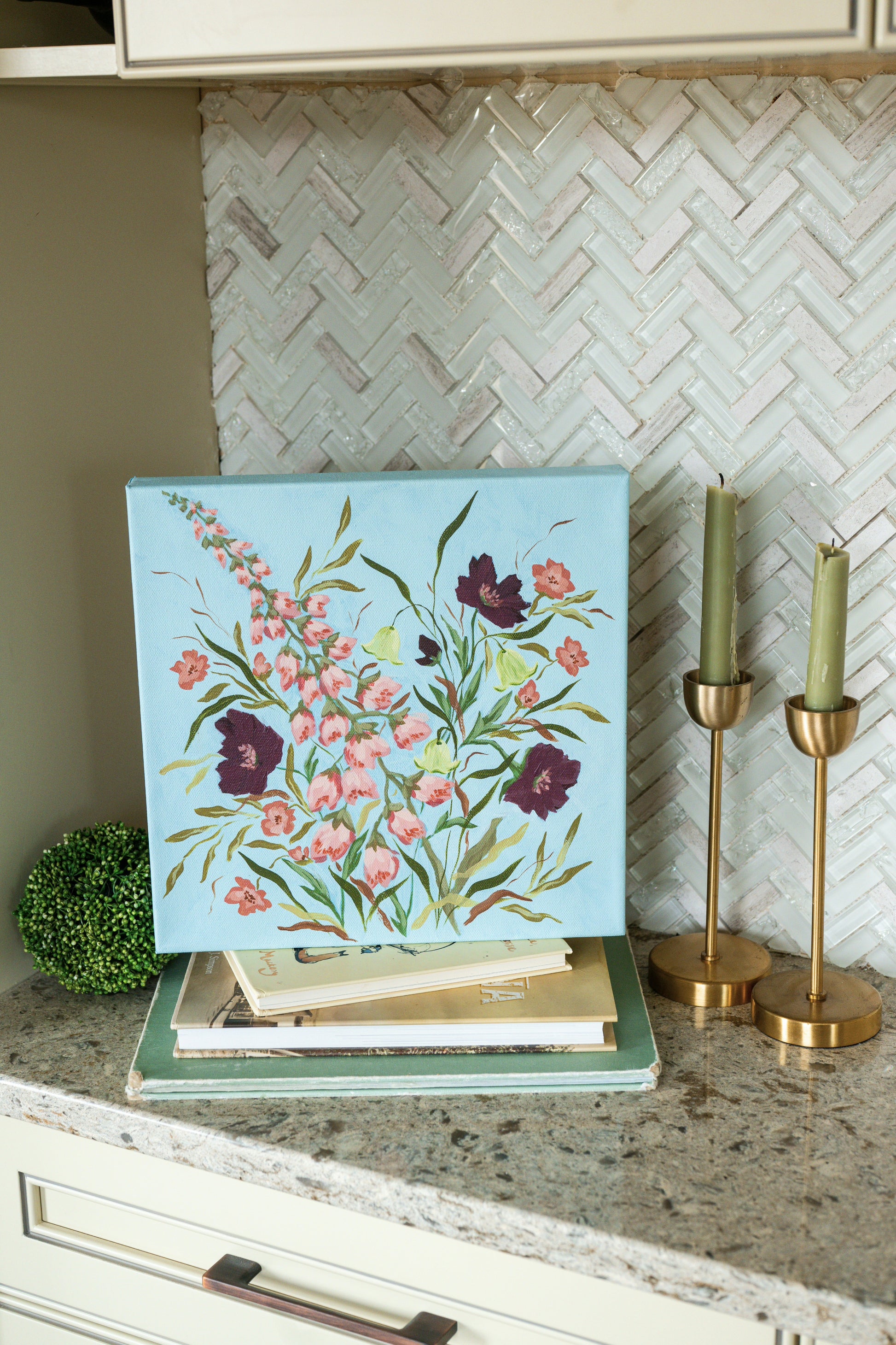 This original is 12x12 inches, acrylic on gallery wrapped canvas. It is varnished and comes ready to hang. Jolene has signed it on the front, as well as signed and titled on the back.